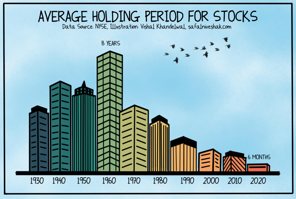 현재 2020년 주식을 가지고 있는 평균 기간은 1960년대의 8년에 비해 겨우 6.25%에 불과합니다. 많은 사람들이 장기간의 투자보다는 지금의 이익과 단기적인 큰 수익을 추구하고 있는 것 같습니다. 여러분은 어떻게 생각하시나요?